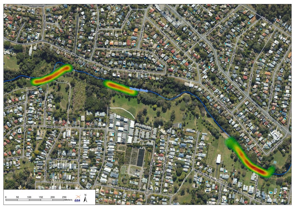 Based on comprehensive geomorphological and ecological assessments from the project's earlier stages, three priority areas along Kedron Brook were identified for proposed restoration works.